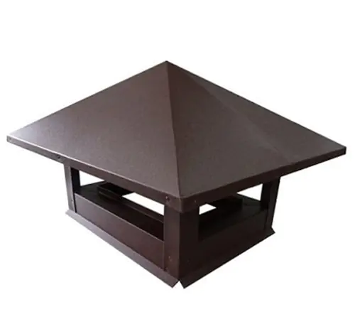 Колпак дымоходный (дымник) из оцинковонной стали – это металлический колпак, который надевактся на дымоходы и вентиляционные трубы сверху. Он предназначен для защиты таких труб от попадания внутри снега и дождя. А еще – и для создания достаточной тяги, что необходимо для отвода продуктов сгорания из дома. Еще выполняет декоративную функцию. Цвет: RAL8017 (коричневый). Стороны 530 мм. Высота 410 мм.