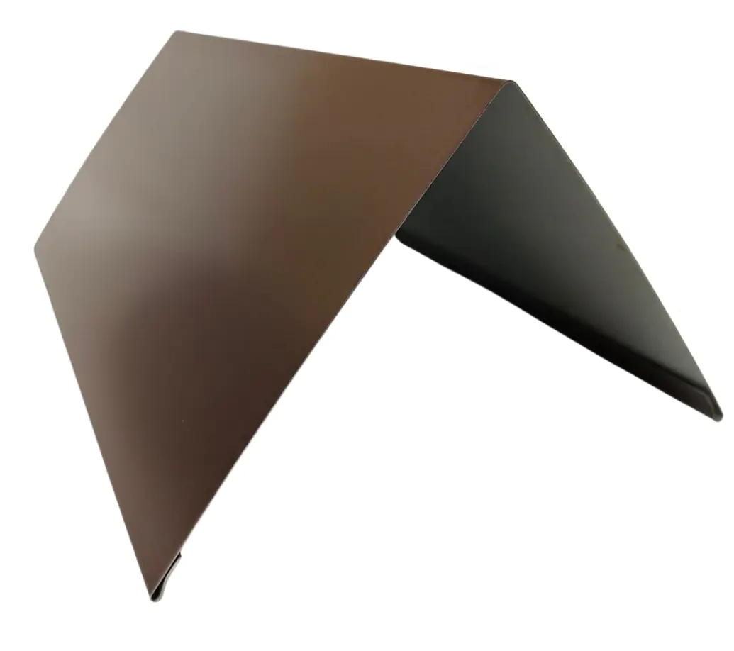 Конек плоский из оцинкованной стали с полимерным покрытием – это элемент кровли, который закрывает стык двух скатов кровли на наклонных ребрах. Главная его задача – не позволить атмосферным осадкам и грязи попасть в подкровельное пространство. Фиксировать следует поверх листов металлочерепицы. Служит для защиты от попадания под кровлю влаги, мусора, насекомых и мелких птиц. Также является частью системы вентиляции, запуская движение воздуха в вентиляционном зазоре под листами черепицы. За счет этого происходит проветривание элементов кровли. Цвет: RAL8017 (коричневый). Длина 2м. Стороны 200 мм.