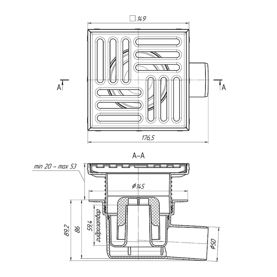 - Высота гидрозатвора: 50 мм.