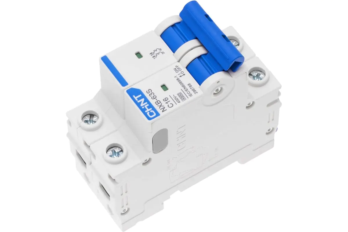Автоматический выключатель CHINT NXB-63S 2P 16A 4,5кА тип C используется для защиты распределительных и групповых цепей от перегрузок и короткого замыкания. Применяется во вводно-распределительных щитах жилых и административных зданий или в промышленности.