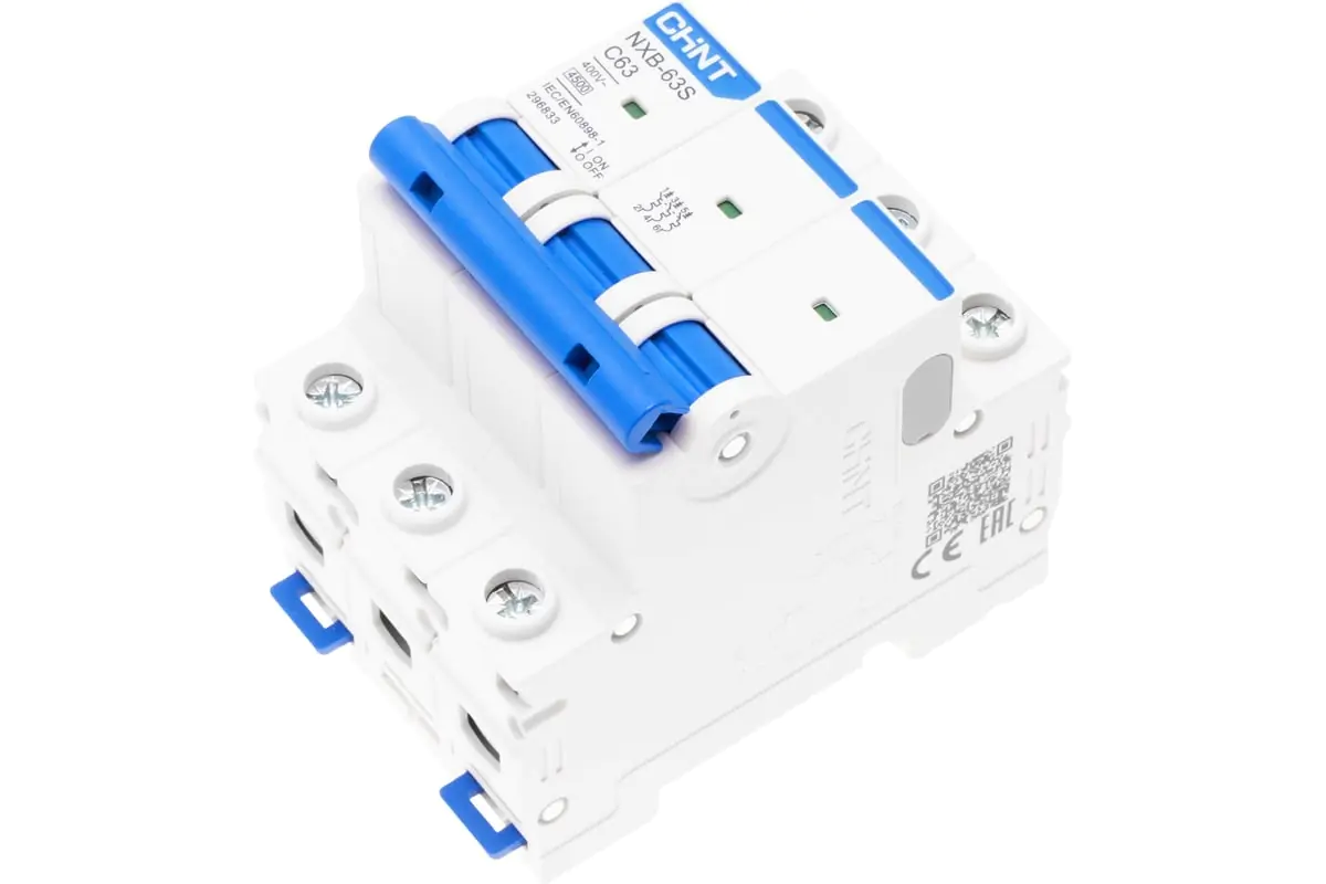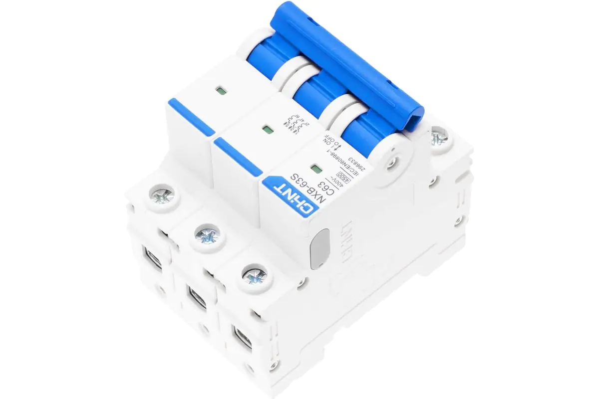 Автоматический выключатель CHINT NXB-63S 3P 63A 4,5кА тип C используется для защиты распределительных и групповых цепей от перегрузок и короткого замыкания. Применяется во вводно-распределительных щитах жилых и административных зданий или в промышленности.