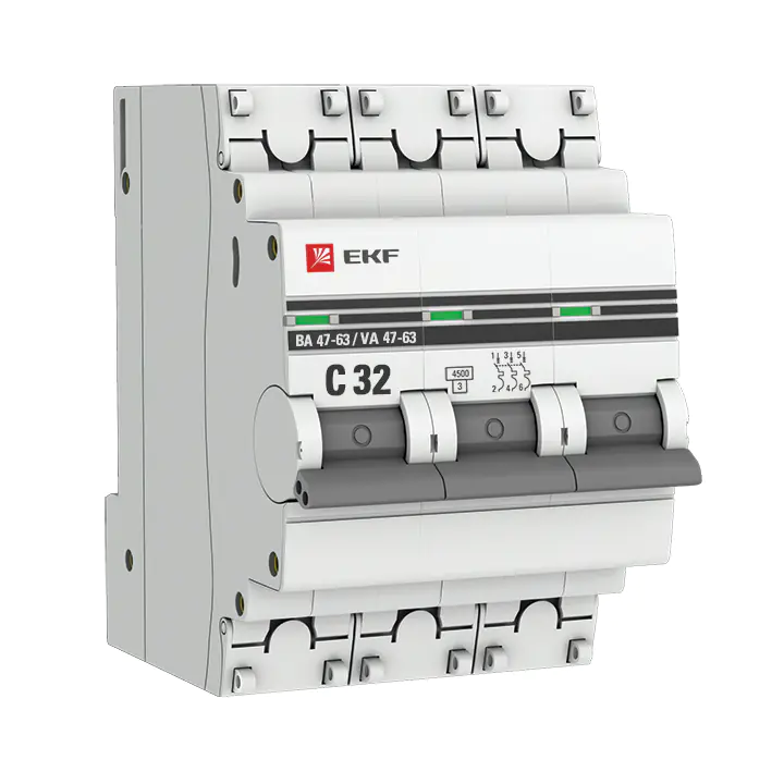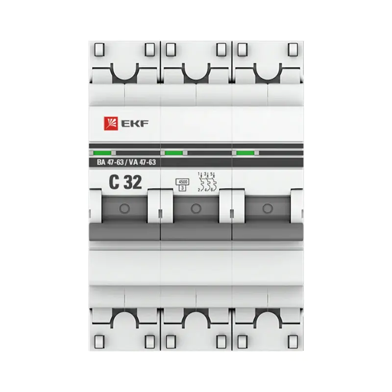 Автоматические выключатели 3P 32A ВА 47-63 4,5 кА EKF PROxima являются механическими коммутационными аппаратами. Особенностью данной серии выключателей является усовершенствованная конструкция. В выключателях имеются пластиковые крышки, закрывающие доступ к винтовому зажиму и служащие для опломбирования выключателей, что исключает несанкционированный доступ к проводникам. Корпус выключателей усилен дополнительными заклепками для устранения эффекта расхождения корпуса. Выключатели оборудованы удобной ручкой управления, обеспечивающей надежное оперирование изделиями. На лицевой панели выключателей имеется цветовой индикатор состояния. Конструкция установочного зажима обеспечивает свободную установку выключателя на DIN-рейку.