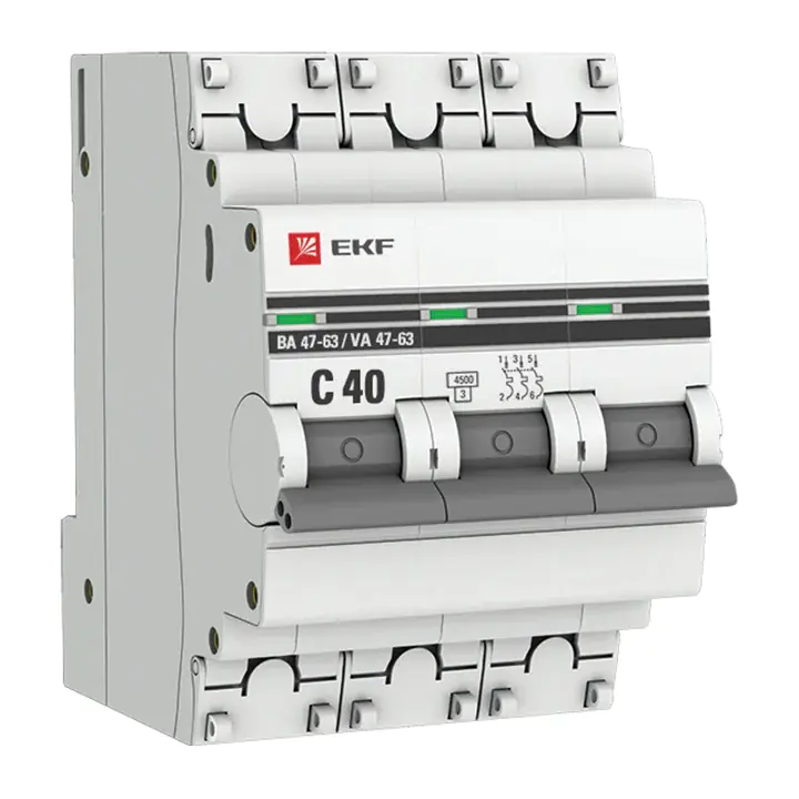 Автоматические выключатели 3P 40A ВА 47-63 4,5 кА EKF PROxima являются механическими коммутационными аппаратами. Особенностью данной серии выключателей является усовершенствованная конструкция. В выключателях имеются пластиковые крышки, закрывающие доступ к винтовому зажиму и служащие для опломбирования выключателей, что исключает несанкционированный доступ к проводникам. Корпус выключателей усилен дополнительными заклепками для устранения эффекта расхождения корпуса. Выключатели оборудованы удобной ручкой управления, обеспечивающей надежное оперирование изделиями. На лицевой панели выключателей имеется цветовой индикатор состояния. Конструкция установочного зажима обеспечивает свободную установку выключателя на DIN-рейку.