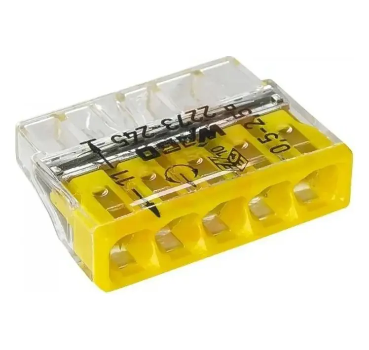 Клемма WAGO 2273-245 с пастой "Alu Plus" предназначена для соединения медных одножильных проводников. Компактные размеры колодки позволяют использовать в условиях ограниченного пространства. Прозрачный корпус позволяет визуально контролировать правильность положения проводника и длину снятия изоляции. Проводящая часть соединителя изготовлена из меди.