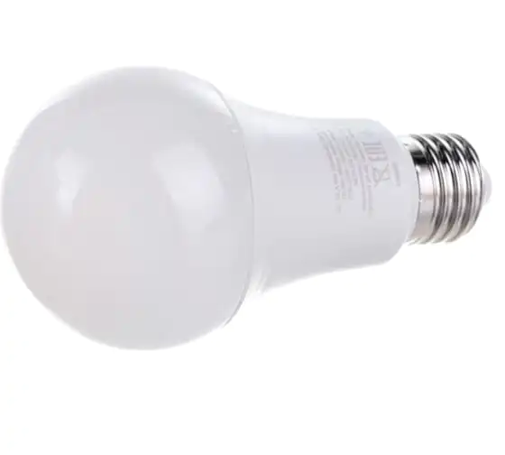 Лампа светодиодная естественного белого света. Мощность 12 Вт. Температура свечения 4000 К. Срок службы составляет около 25000 часов. Форма лампы грушевидная.