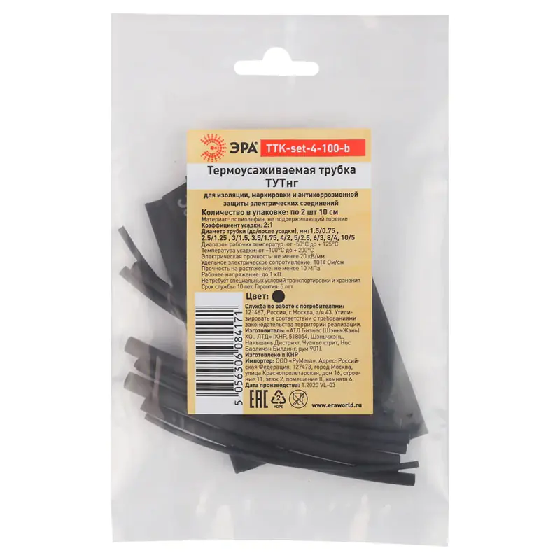 Термоусаживаемая трубка используется для изоляции, цветовой маркировки и антикоррозионной защиты электрических соединений. Изготовлена из высококачественного полиолефина. В набор входят трубки девяти разных диаметров по 2 штуки каждой.