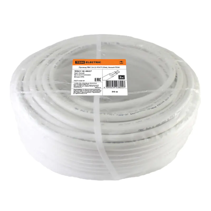 Провод ПВС 2х1,5 ГОСТ TDM, 50 м