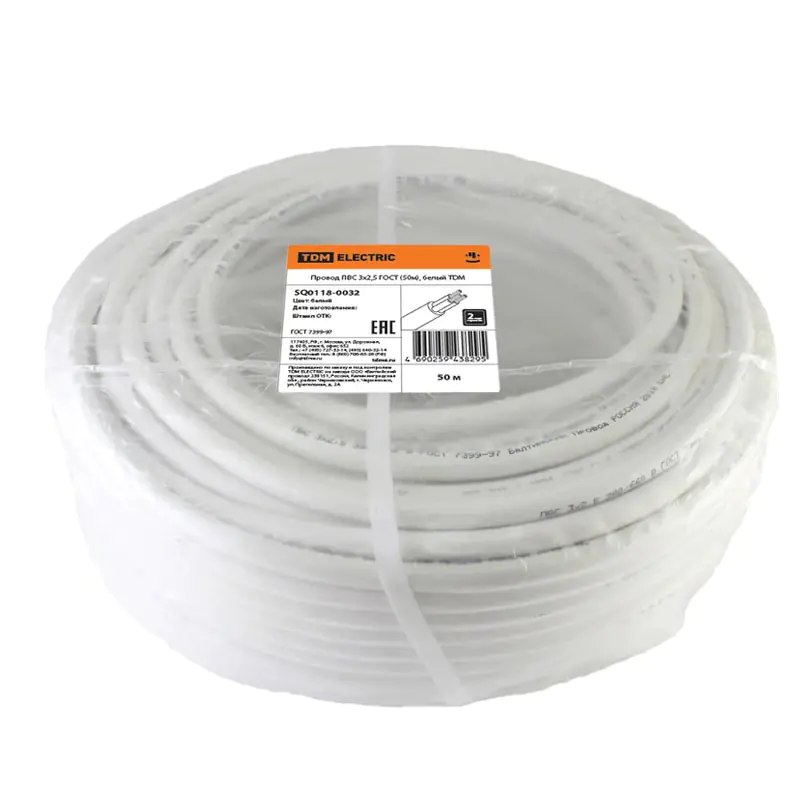 Провод ПВС 3х2,5 ГОСТ TDM, 50 м