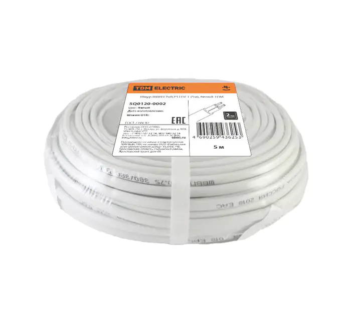 Шнур ШВВП 2х0,75 ГОСТ 5 м TDM Electric – это высококачественный кабель, который предназначен для передачи и распределения электрической энергии в стационарных установках. Проводник этого шнура выполнен из многопроволочной медной жилы (Cu), что обеспечивает его высокую проводимость и долговечность. Материал изоляции – ПВХ (поливинилхлорид), который обеспечивает надежную защиту от механических повреждений и высокую устойчивость к воздействию влаги. Шнур ШВВП 2х0,75 ГОСТ (5 м) имеет две жилы сечением 0,75 мм², что позволяет передавать и распределять электрическую энергию на номинальное переменное напряжение 0,66 и 1 кВ при номинальной частоте 50 Гц. Максимальная нагрузка составляет 0,38 кВт.