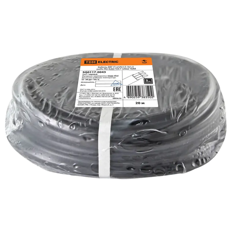 Кабель ВВГ Пнг(А)-LS 3х1,5 ок(N, PE)-0,66 ГОСТ TDM, 20 м