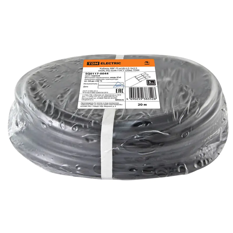 Кабель ВВГ Пнг(А)-LS 3х2,5 ок(N, PE)-0,66 ГОСТ TDM, 20 м