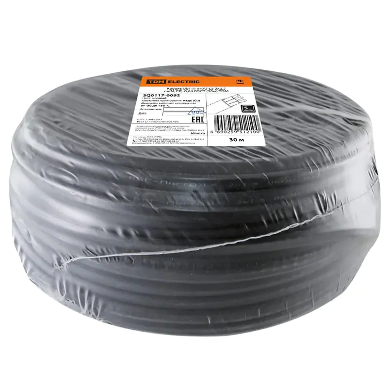 Кабель ВВГ Пнг(А)-LS 3х2,5 ок(N, PE)-0,66 ГОСТ TDM, 30 м