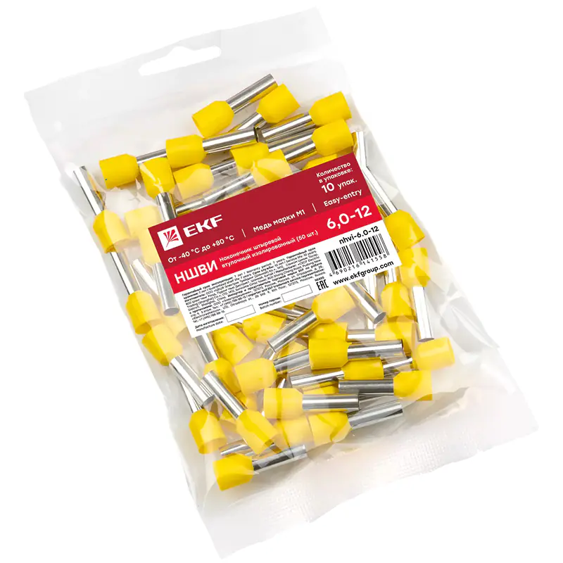 Одинарные втулочные наконечники НШвИ являются единственными специально разработанными наконечниками под опрессовку, которые полностью заменяют обязательный процесс обслуживания многопроволочных медных проводов (типа ПВ-3, ПВС и т. п.) при монтаже различного электрооборудования. Цена за упаковку 50 шт.