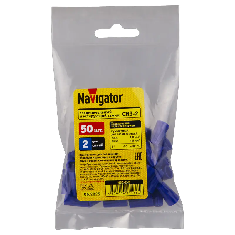 Соединитель проводов СИЗ-2 NSC-2-B (50 шт) Navigator 71136 входит в группу изолирующих зажимов, наконечников и клемм и предназначен для быстрого и надёжного соединения проводов различного сечения. Серия NSC-2-B охватывает диапазон сечения проводов от 2.5 до 4.5 мм, упаковка рассчитана на 50 штук.