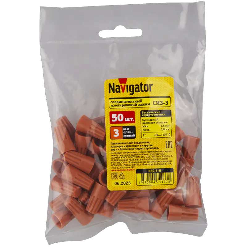 Соединитель проводов СИЗ-2 NSC-3-O (50 шт) Navigator 71137 входит в группу изолирующих зажимов, наконечников и клемм и предназначен для быстрого и надёжного соединения проводов различного сечения. Серия NSC-3-O охватывает диапазон сечения проводов от 2.5 до 5.5 мм. В упаковке 50 штук.