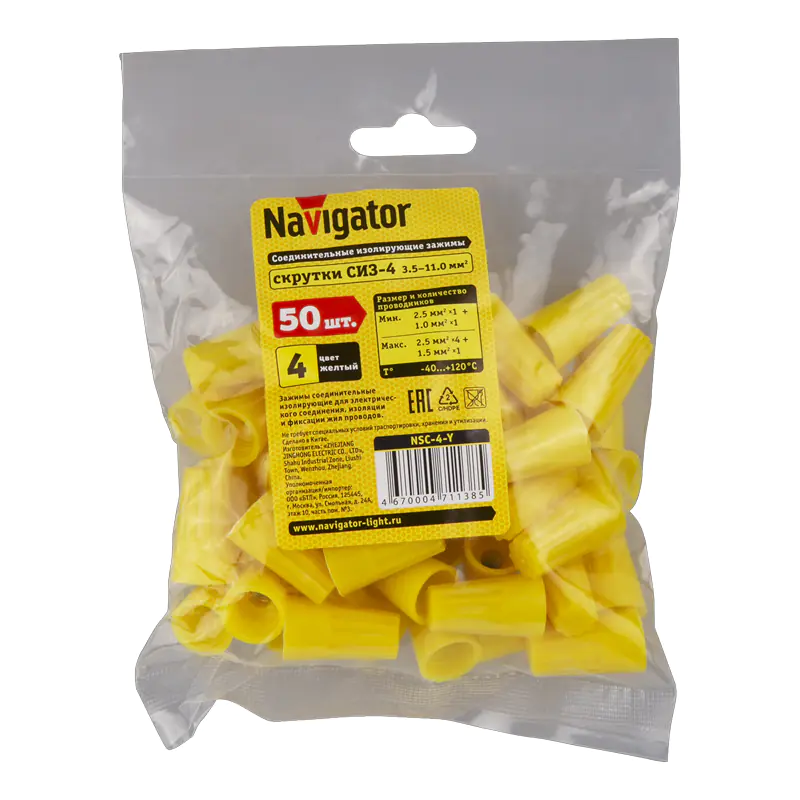 Соединитель проводов СИЗ-4 NSC-4-Y (50 шт) Navigator 71138 входит в группу изолирующих зажимов, наконечников и клемм и предназначен для быстрого и надёжного соединения проводов различного сечения. Серия NSC-4-Y охватывает диапазон сечения проводов от 3.5 до 11 мм². В упаковке 50 штук.