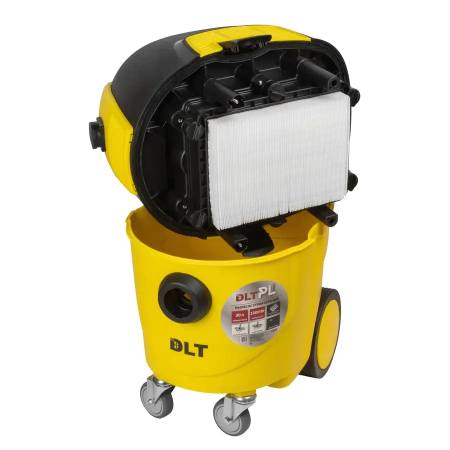 Строительный пылесос DLT PL PRO это усовершенствованная модель уже известного и проверенного в работе пылесоса DLT PL208, были произведены улучшения и доработки крыльчатки двигателя, добавлен многоразовый мешок-фильтр в комплект поставки, доработаны защелки крепления бака и многое другое, что позволит выполнять работы еще более эффективнее и безотказнее.