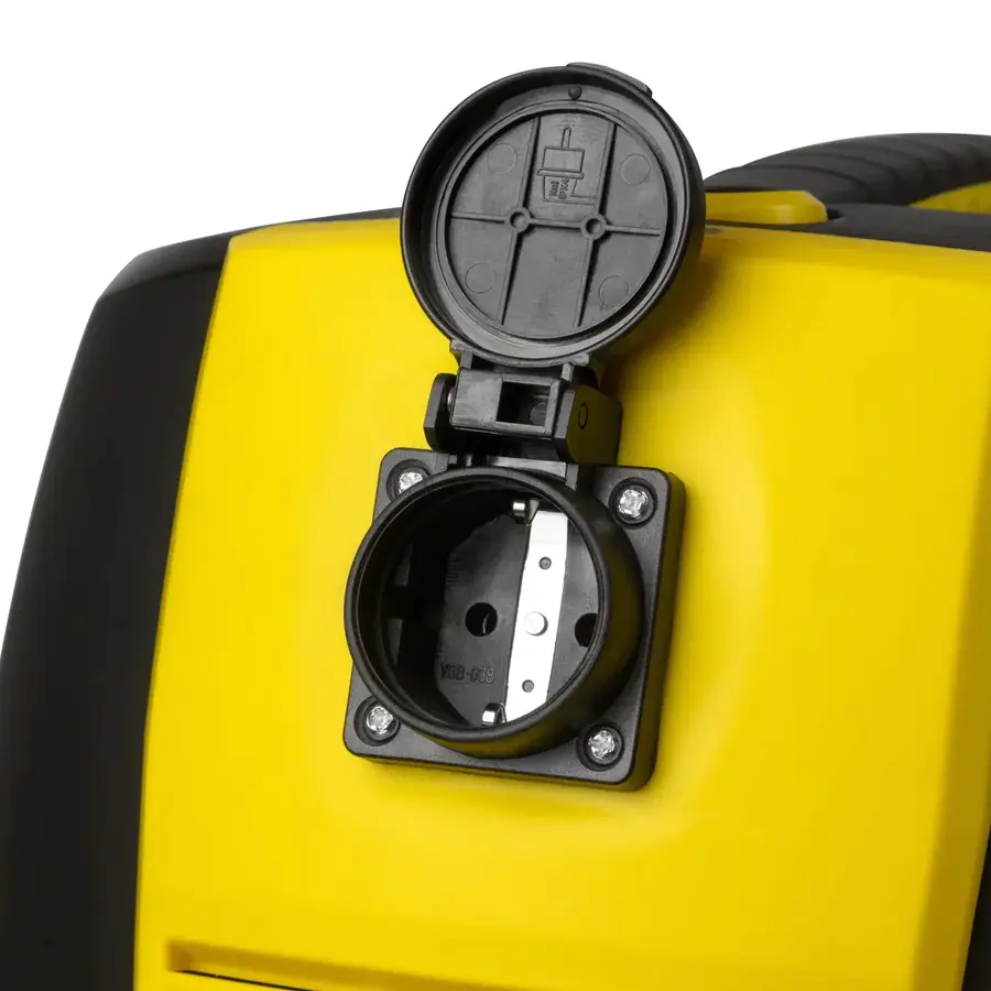 Синхронизация с инструментом. Встроенная розетка для подключения оборудования мощностью до 2000 Вт. Пылесос включается вместе с инструментом и выключается с небольшой задержкой, чтобы полностью удалить пыль из шланга.