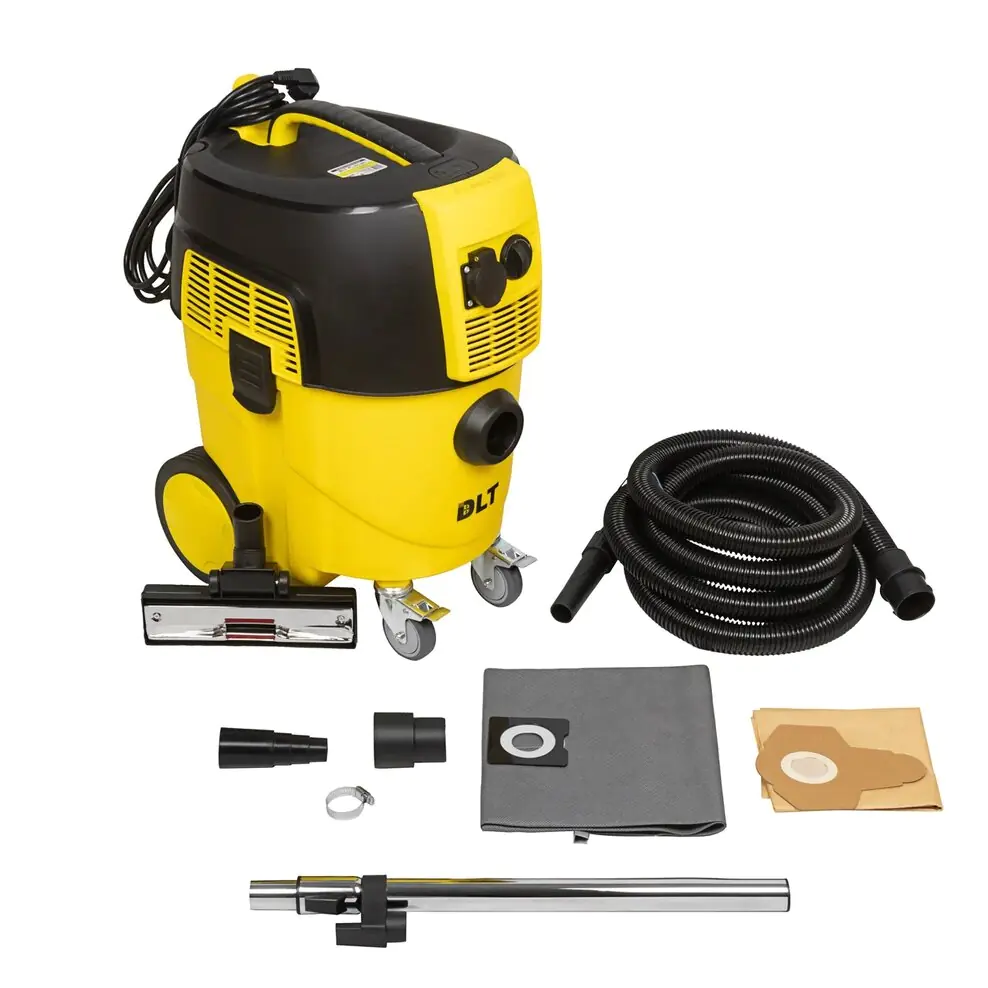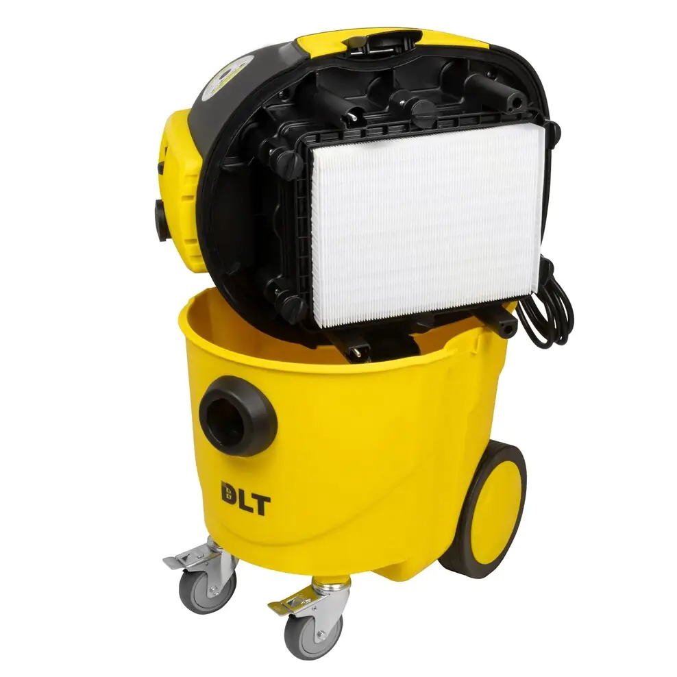 Строительный пылесос DLT PL PRO MAX предназначен для работы с пылью класса L — малоопасные вещества с предельно допустимой концентрацией более 1 мг/м³ и размером частиц менее 2 мкм (известь, мел, гипс, глина, краски, лаки, мягкая древесина и др.).