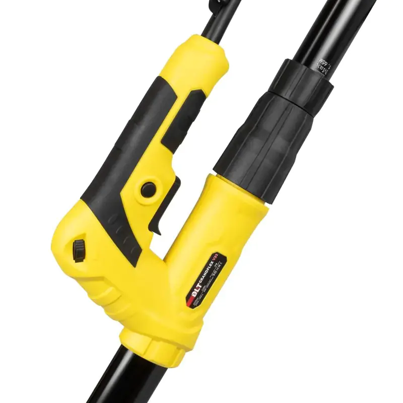 - Складная конструкция. Корпусная рукоятка раскладывается пополам + дополнительная вставка для шлифовки потолков без стремянки, что позволяет работать шлифмашиной как в узких местах, так и с высокими потолками, а также дополнительное удобство хранения и транспортировки.
