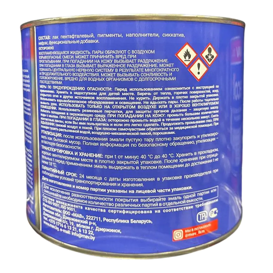 Суспензия пигментов и наполнителей в пентафталевом лаке с добавлением сиккатива, растворителей и функциональных добавок.