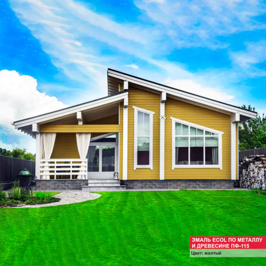 Эмаль ПФ-115 ECOL по металлу и древесине подходит для покраски металлических, деревянных и других поверхностей, подвергающихся атмосферным воздействиям, а также для окраски внутри помещений (исключение - полы). Пентафталевой эмалью можно красить окна, двери, садово-парковую мебель (включая беседки и скамейки), деревянные и металлические изгороди, металлоконструкции, ворота, машины, оборудование и многое другое. Цвет желтый. Объем 1 л.