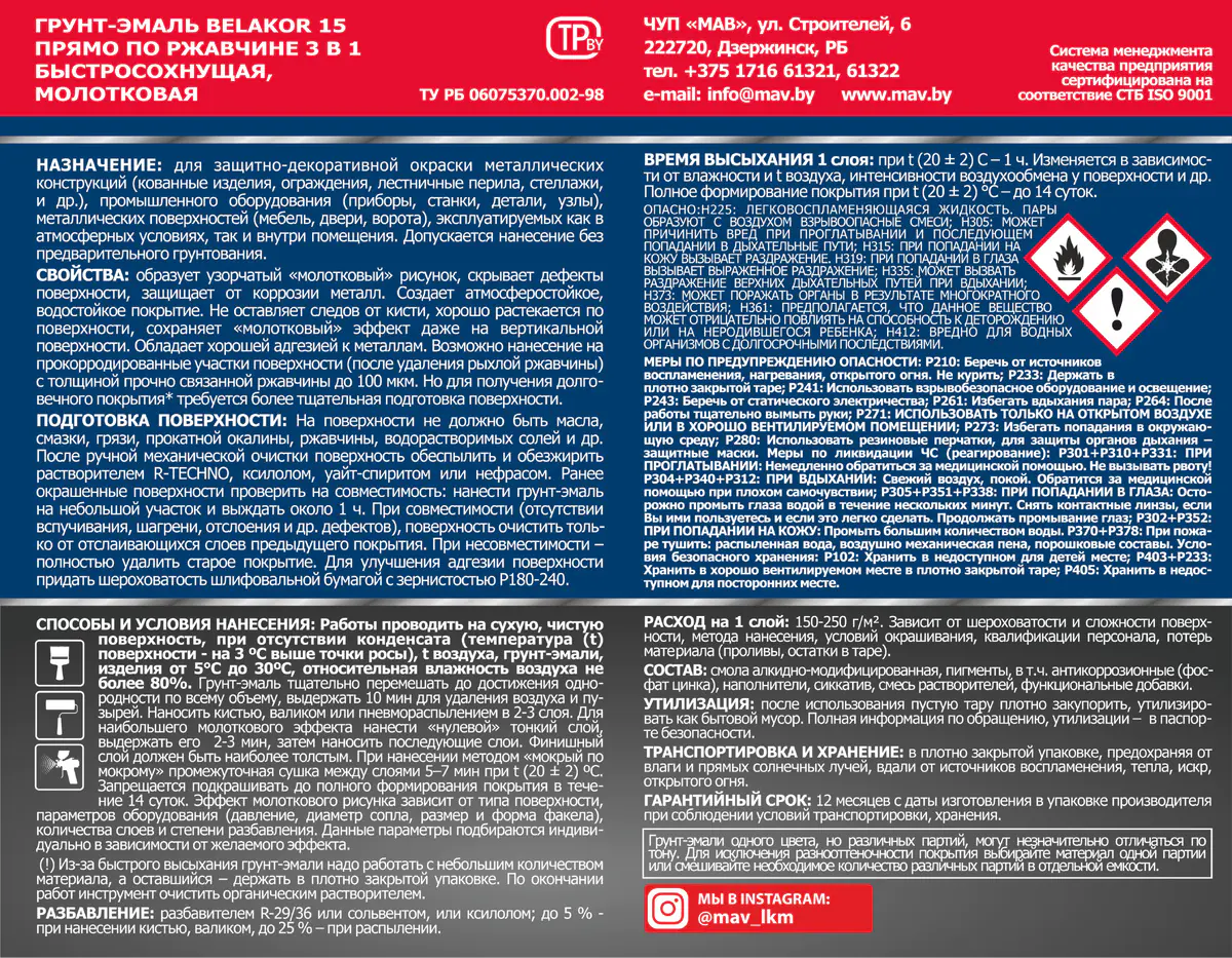 Свойства грунт-эмали Belakor 15 молотковая: