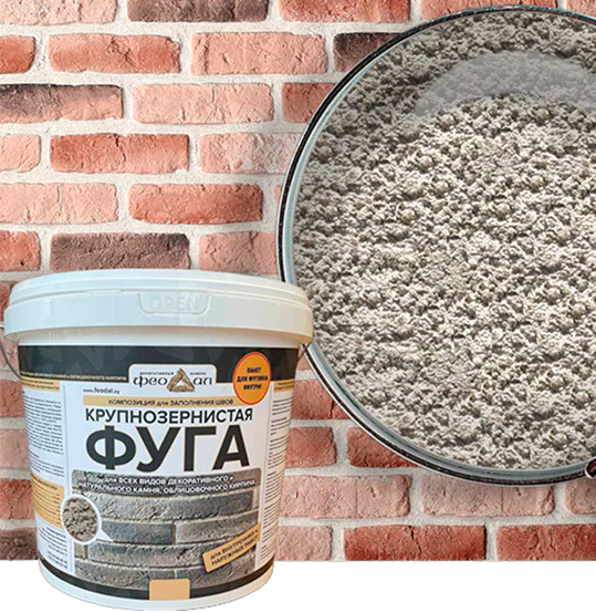Крупнозернистая фуга ФЕОДАЛ применяется для заполнения швов (0,8-3 см). Она выступает не только как защита от влаги между элементами, но и как декоративное обрамление. При помощи фуги можно обновить старую кладку - перекрыть (реконструировать) сколы и зазубрины по краям плит.