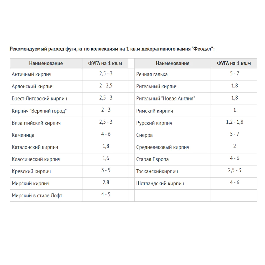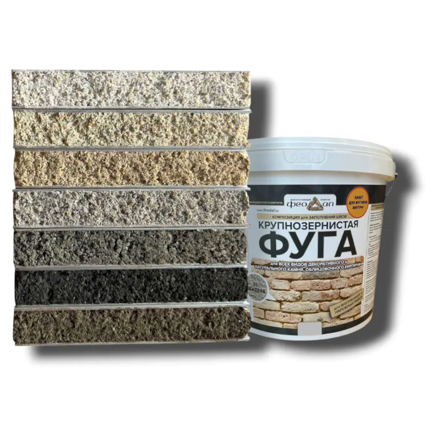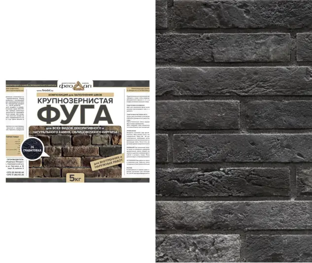 Крупнозернистая фуга ФЕОДАЛ применяется для заполнения швов (0,8-3 см). Она выступает не только как защита от влаги между элементами, но и как декоративное обрамление. При помощи фуги можно обновить старую кладку - перекрыть (реконструировать) сколы и зазубрины по краям плит.