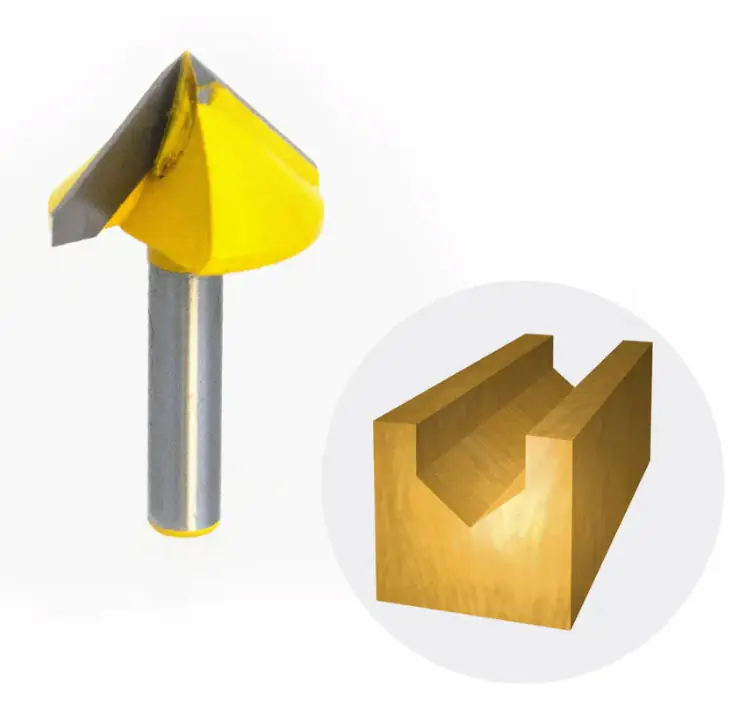 Фреза пазовая галтельная V-образная VIRA предназначена для выборки паза правильной симметричной V-образной формы, острым концом обращенной вниз. Используется для таврового присоединения декоративных планок, а также для соединения деталей деревянных конструкций "в шип".