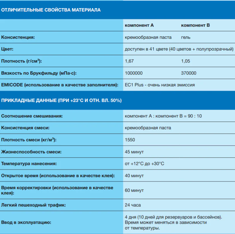 • Отличная удобоукладываемость, намного лучше, чем у традиционных эпоксидных составов, благодаря кремообразной консистенции, которая гарантирует более быстрое нанесение и облегчает очистку с поверхностей, сокращает количество отходов и упрощает создание хорошей поверхности шва.