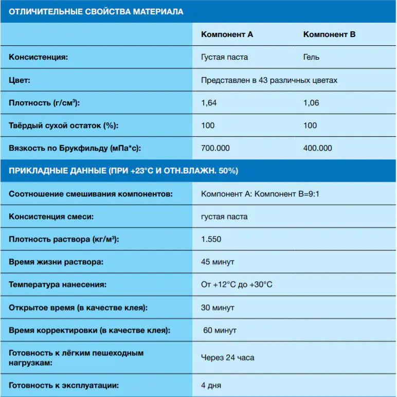 Упаковки предварительно дозированы, поэтому ошибки смешивания исключены. Не меняйте дозировку при смешивании: если соотношение катализатора будет неправильным, отверждение нарушится.