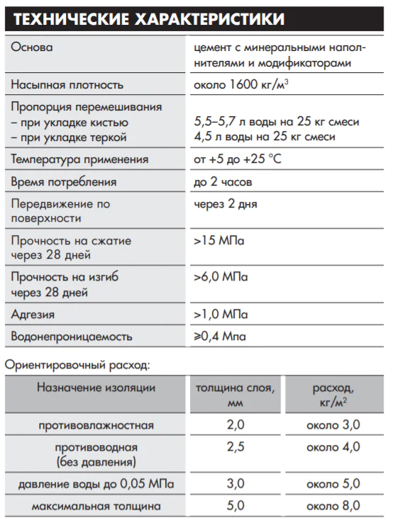 Ceresit CR 65 применяется для противовлажностной или противоводной изоляции недеформирующихся и незасоленных минеральных оснований. Подходит для изоляции внутри монолитных бассейнов и резервуаров с водой (в том числе питьевой) глубиной до 5 м. Ceresit CR 65 надежно защищает от воды и влаги железобетонные, бетонные и каменные конструкции, а также поверхности цементных штукатурок и стяжек. Там, где изоляция будет подвергаться механическому воздействию (напр., пешее движение), Ceresit CR 65 необходимо защитить, уложив керамическую плитку с помощью смесей Ceresit группы CM, либо уложить другое покрытие на полах, а стены оштукатурить. Для деформирующихся оснований необходимо использовать эластичные составы, позволяющие перекрывать трещины в основании: Ceresit CR 166, Ceresit CL 51. Для изоляции локальных утечек воды можно использовать материалы Ceresit CX 1 или CX 5.