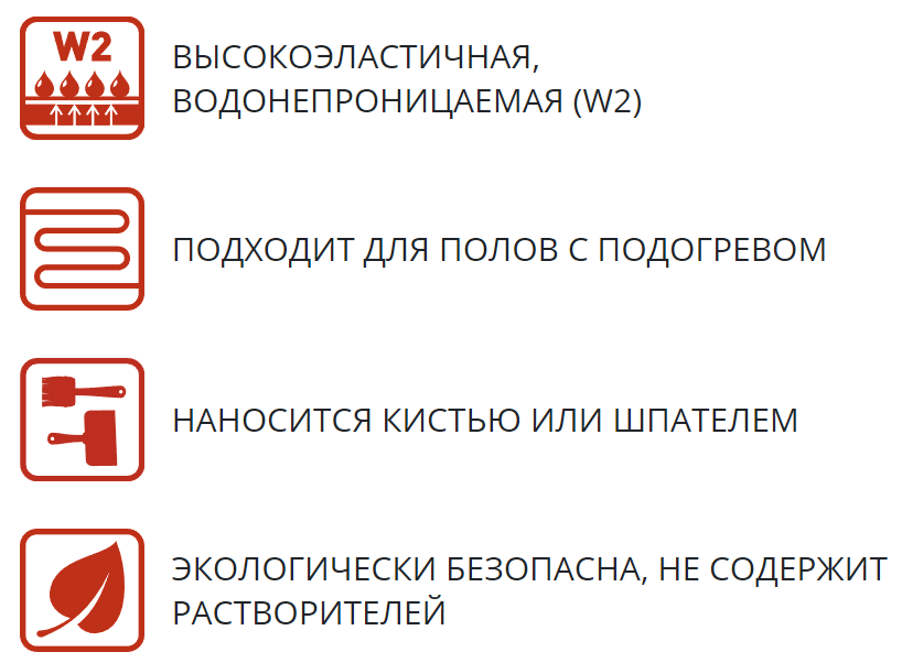 Не содержит растворителей, экологически безопасна. Зеленый цвет позволяет контролировать равномерность нанесения мастики. ilmax ready aquastop является высокоэластичной (перекрывает трещины в основании до 1 мм).