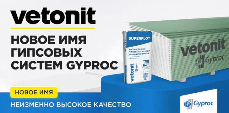 - Оптимальное соотношение прочности и толщины позволяет использовать Vetonit (Gyproc) Аква Лайт в конструкциях потолков, увеличивая срок эксплуатации всей системы, в которой установлена плита.