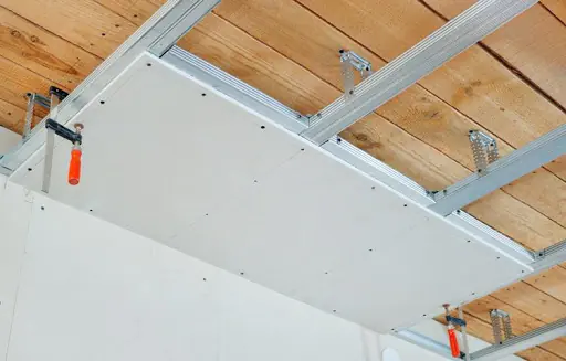 Этот гипсокартон удобен для создания многоуровневых потолков в кафе и квартирах, использования на даче. Крепите потолочный гипсокартон Knauf на нужной высоте, используя профильную систему. Соблюдайте ровную поверхность.
