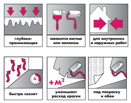 • увеличивает адгезию последующего слоя краски с  основанием и уменьшает ее расход;
