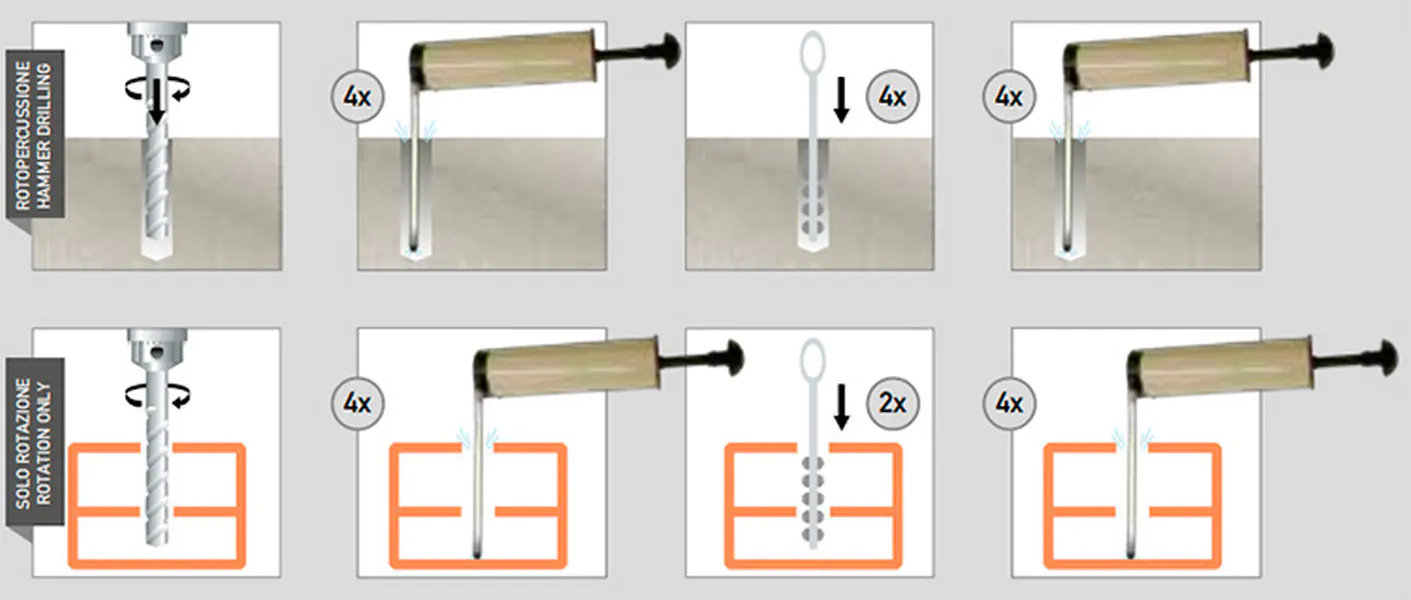 Подходит для использования в полых материалах с использованием специальной сетчатой гильзы.