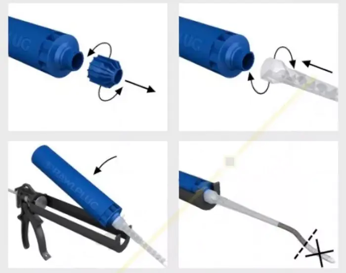 Смеситель (насадка-миксер) применяется для смешивания двухкомпонентных инжекционных масс химического анкера. Необходим для повторного использования химического анкера. Если после применения смола осталась в баллоне, то для повторного применения необходимо заменить смеситель. Может применяться со всеми типами химических анкеров.