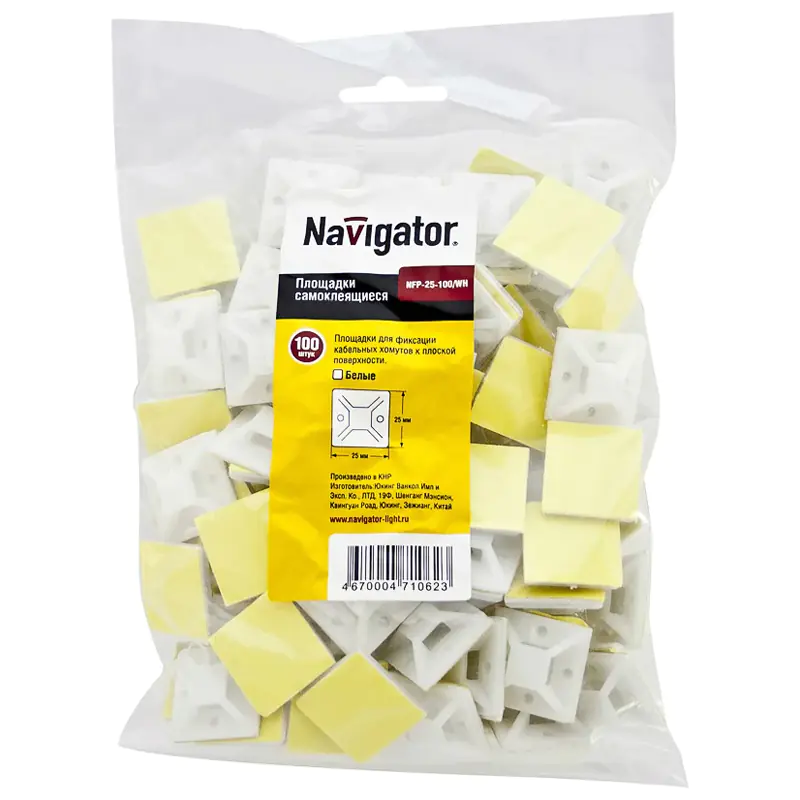 Монтажная самоклеящаяся база Navigator 20х20 белый NFP-20-100/WH 100 шт 71061 предназначена для монтажа хомутов к плоской поверхности. Простое крепежное приспособление с самоклеящейся поверхностью выполнено из полиамида. Упаковка - 100 штук. Максимальная ширина хомута - 3,6 мм.