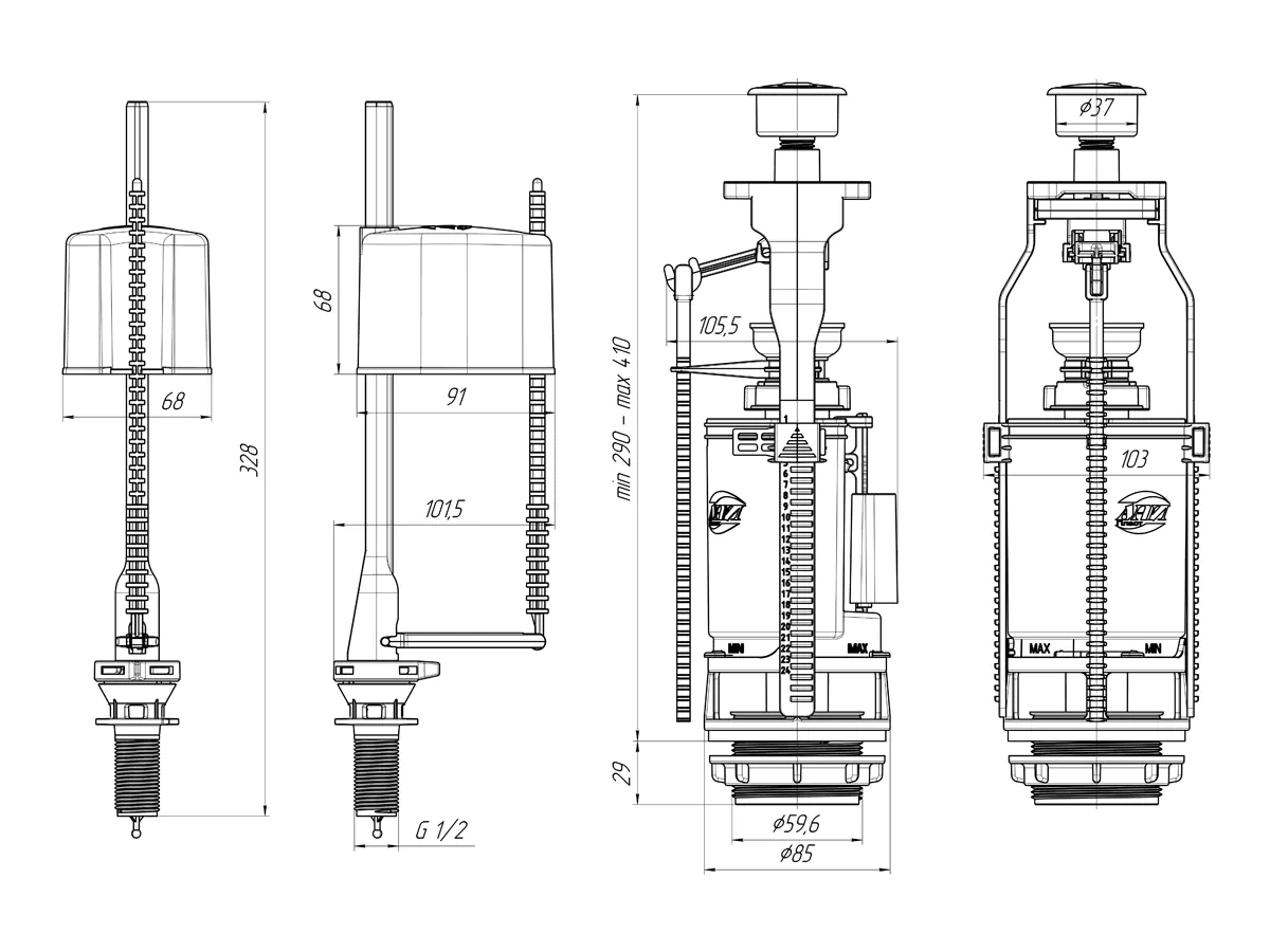 Набор для бачка унитаза АНИ пласт WC3550M. Наливной механизм с нижней подводкой и пластиковой резьбой диаметром G 1/2 регулировка по высоте 234-328 мм. Сливной механизм металлизированная кнопка с двойным режимом слива, регулировка по высоте 290-410 мм. Отверстие для кнопки слива в крышке бачка 40 мм, посадочное отверстие сливной арматуры 60 мм. Арматура является важным механизмом, необходимым для правильной работы сливного бачка. Изделие произведено из высококачественного пластика, который обеспечивает длительную эксплуатацию без поломок.
