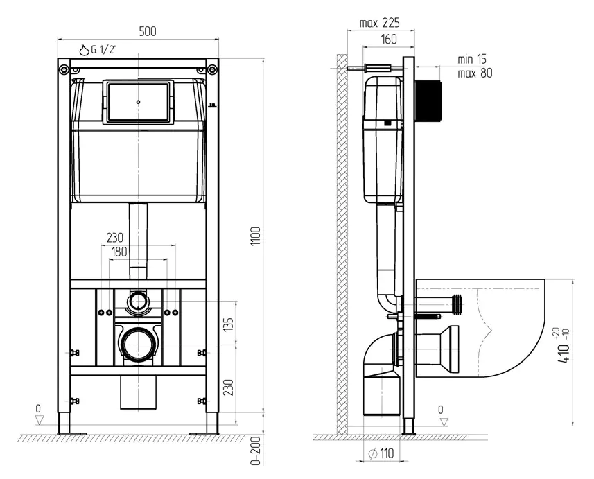 - Стандартное межосевое расстояние для крепления подвесного унитаза - 180 мм или 230 мм (совместимо с любой моделью унитаза).
