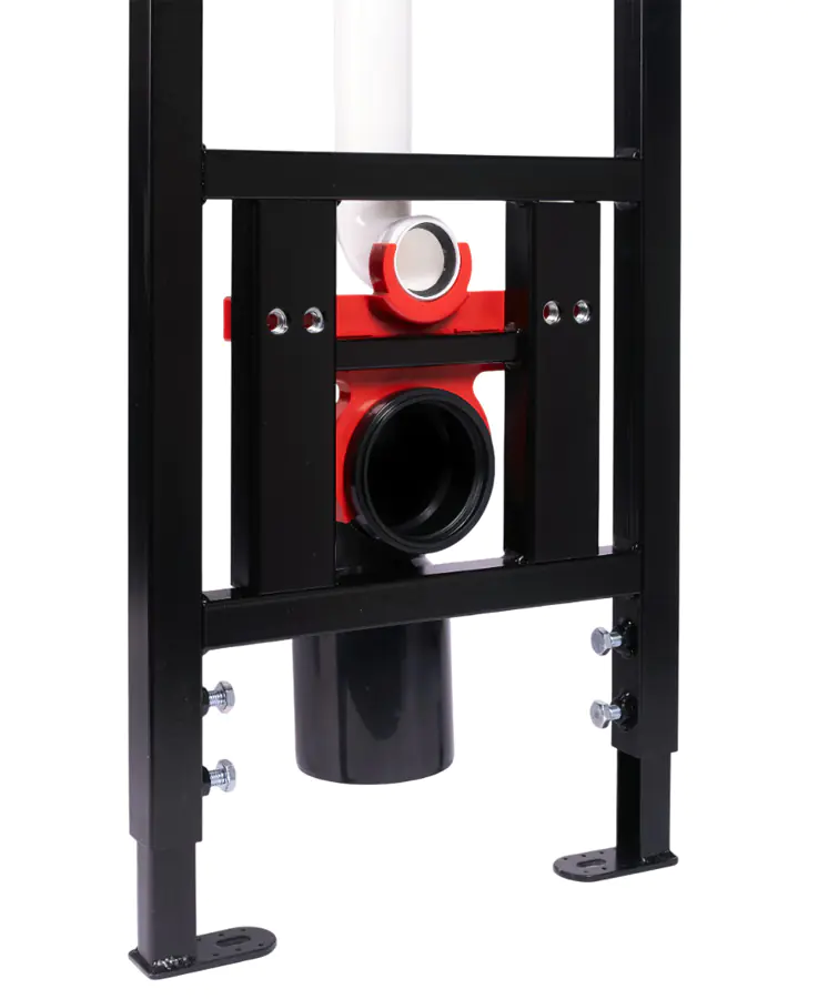 Инсталляция для подвесных унитазов АНИ Пласт WC1110, представляет собой функциональное и надежное решение для оборудования современных санузлов. Монтаж несущей рамы осуществляется непосредственно в капитальную стену, поверх зашивается влагостойкими материалами, такие как ГВЛ и декоративная плитка. Сам унитаз и кнопка смыва располагаются на поверхности стены, создавая эстетически привлекательную композицию.