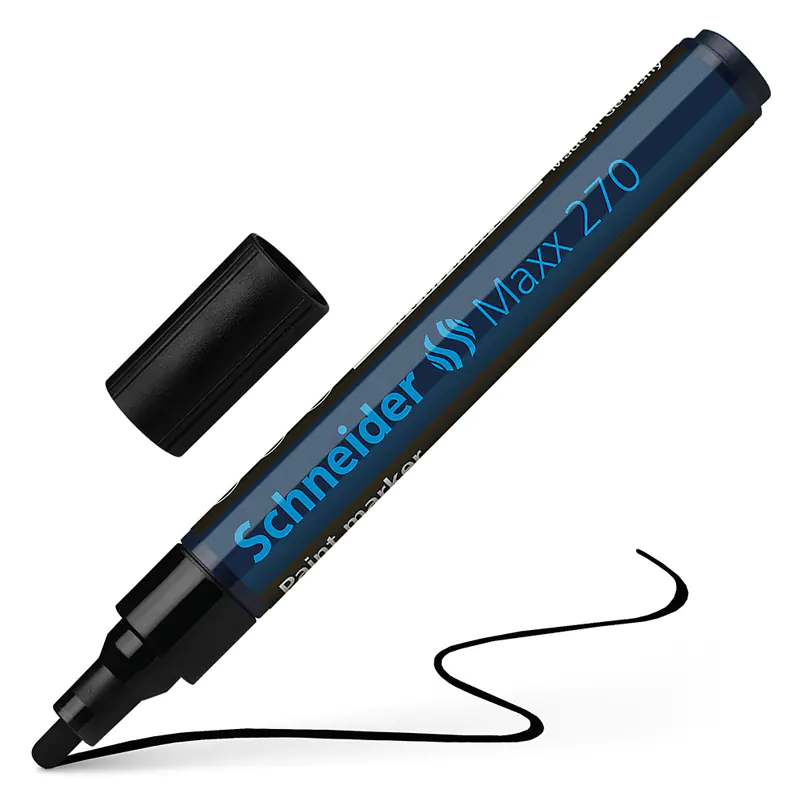 Маркер Schneider Maxx 270 с пулевидным наконечником идеально подходит для маркировки и декорирования шероховатых и гладких поверхностей, например, бумаги, пластика, стекла, керамики, металла, кожи, резины и т. д. Наносимые маркировки отличаются высокой непрозрачностью, устойчивостью к стиранию практически на всех материалах, светостойкими, водостойкими и термостойкими до 300 °C свойствами.