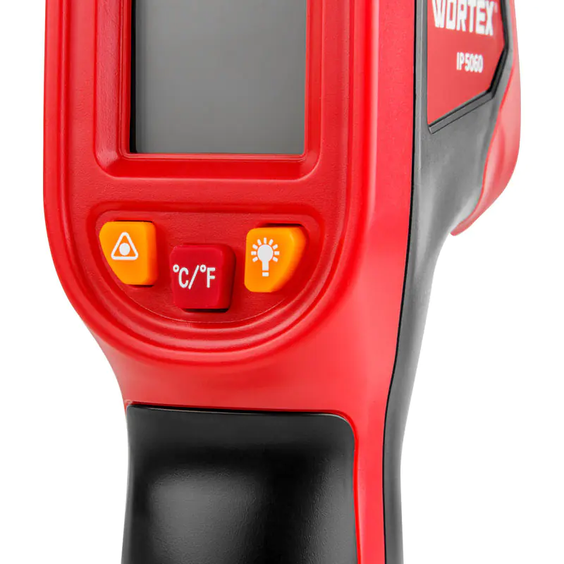 Инфракрасный термометр (пирометр) Wortex IP 5060 (1323797) используется для дистанционного определения температуры. Благодаря регулировке чувствительности, есть возможность измерять температуру объектов из различных материалов и с различным коэффициентом излучения. Встроенный лазер помогает точно навести объектив пирометра на измеряемую поверхность