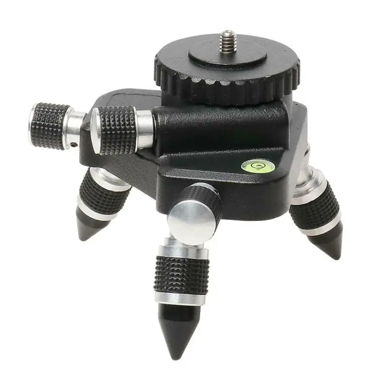 Платформа имеет пузырьковый уровень и регулируемые по высоте ножки, предназначенные компенсировать уклон поверхности, увеличивая диапазон самовыравнивания нивелиров до 10°. Подставка имеет винт 1/4" для установки на неё нивелиров, а сама платформа может устанавливаться на штативы и штанги с резьбой 5/8".