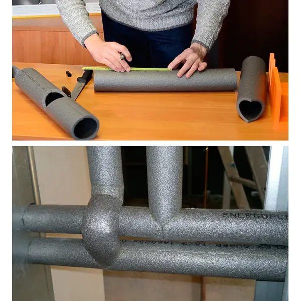 Нужно было заизолировать трубы отопления в подвале. Выбрал трубу вспененную, в магазине порекомендовали. Села отлично. Выглядит довольно таки эстетично. Легко режется. Соединил армирующим скотчем