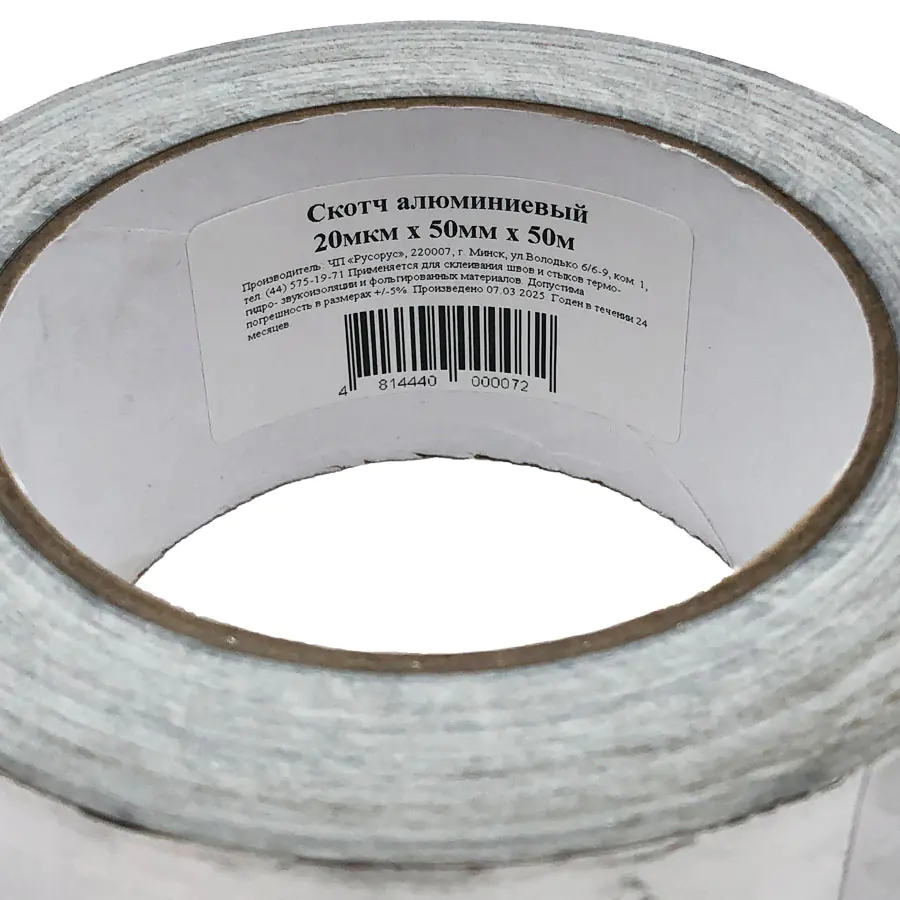 Скотч фольгированный алюминиевый 50мм х 50м применяется для эффективных изоляционных работ. Алюминиевый скотч – это клеевая тонкая алюминиевая лента, которая имеет высокую степень теплоизоляции и повышенную прочность.