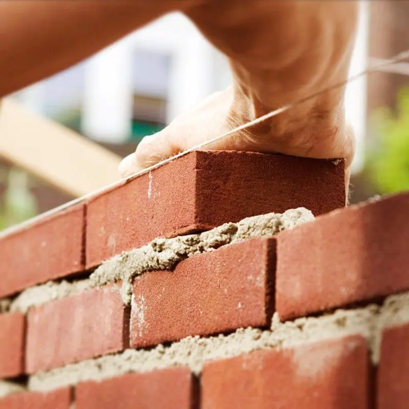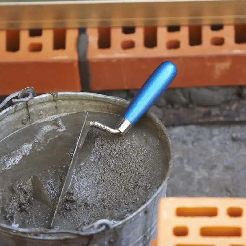 - Готовый раствор равномерно нанести мастерком на горизонтальную поверхность уже приклеенных кирпичей или блоков и на вертикальную поверхность прикрепляемого блока/кирпича. Следует полностью заполнять раствором все горизонтальные и вертикальные швы.