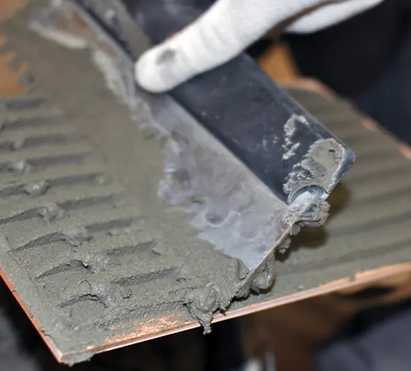 Состав наносится на облицовываемую поверхность при помощи зубчатого металлического шпателя, после чего плитка плотно прижимается к основанию. Возможна корректировка положения плитки в течение 10-15 минут. Толщина клеящего слоя 2,0-10,0 мм. Предварительное намачивание плитки не требуется. К фуговании швов следует приступать не ранее чем через 24 часа. В процессе выполнения работ облицовываемые участки должны быть предохранены от атмосферных осадков и от воздействия прямых солнечных лучей.